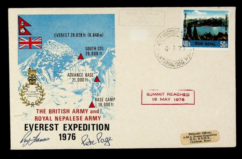Nepal-British Army 1976 Mt. Everest Expedition signed illustrated cover w/ 50p to Chatham England (Image)