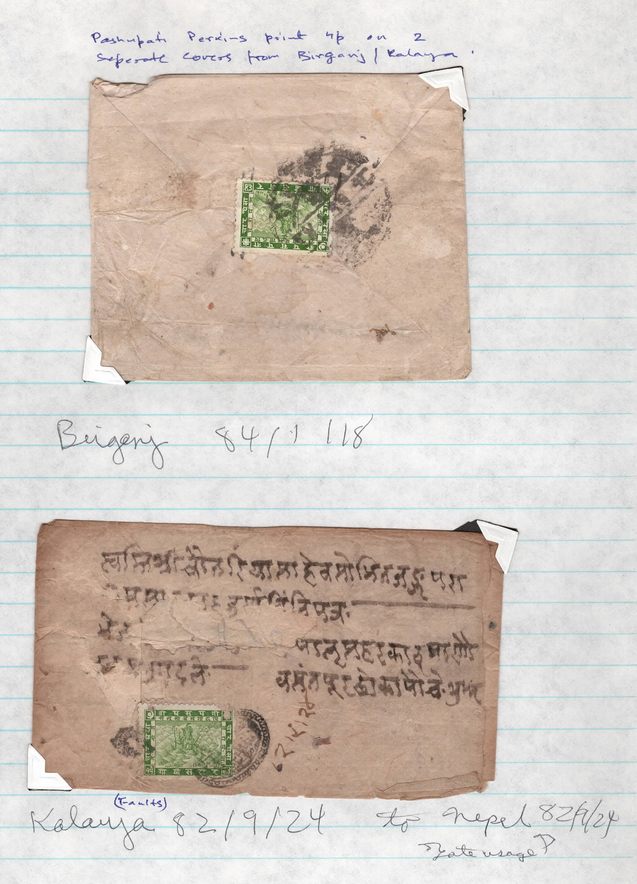 Nepal Pashupati Perkins print 4as on 2 covers to Birganj & Kalaya. Ex. Vignola(Image 1) (Image)