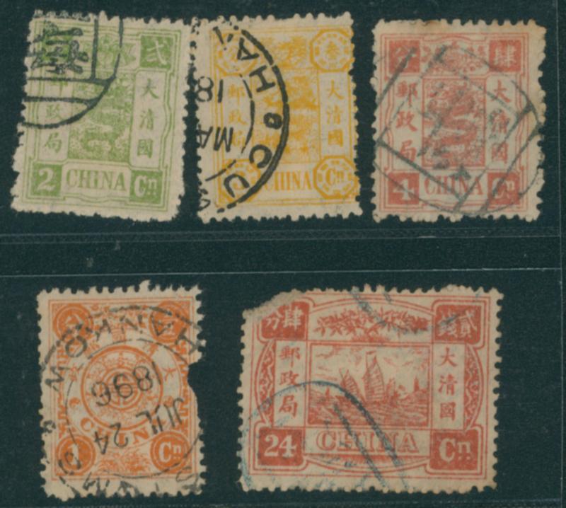 China 1894 Dowagers Empress First Printing 1c., 2c., 3c., 4c., 24c. 1c. and 24c. are scratched. used (Image1)