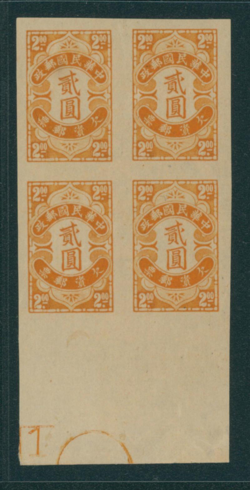 China 1940 Postage due stamps Hong Kong Commercial Press Print $2 imperf. block of four with bottom margin. unused (Image1)