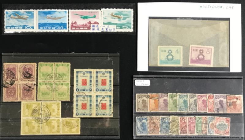 China First Peking Print Junk short set up to $5. Four used blocks from Manchuria etc. good condition, mixed condition of unused and used, (Image1)