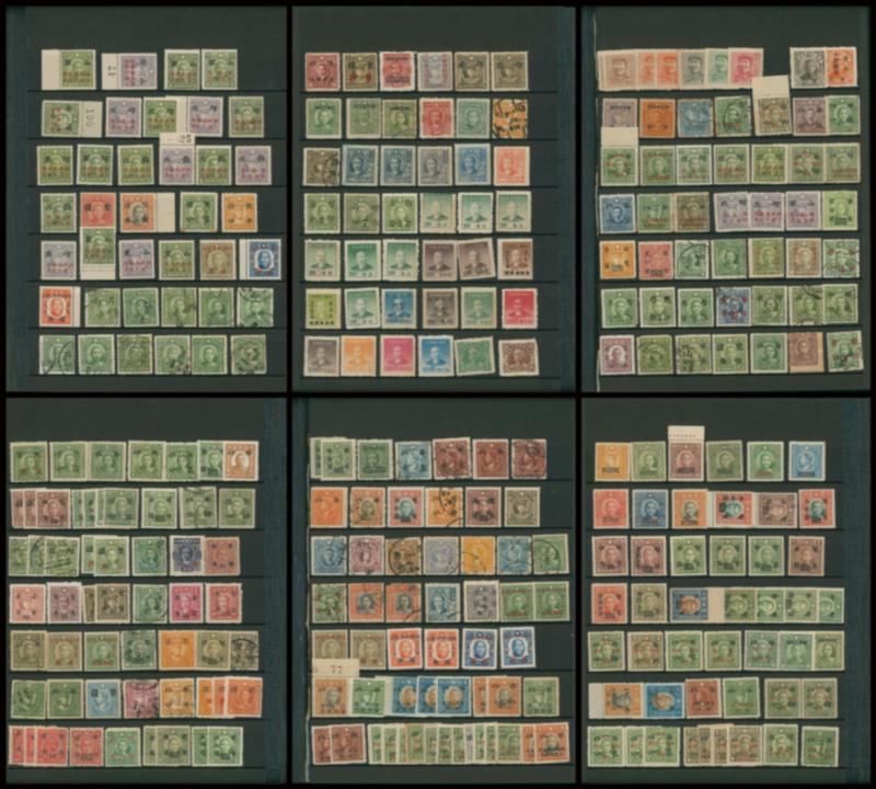 China 1931-1949 This lot includes unoverprinted Sun Yat-sen and Martyr stamps, overprinted stamps, and overprints from Japanese-occupied areas. , 290 stamps It also includes a partial Liberation Area. mixed condition of unused and used,YouTube(Image1)