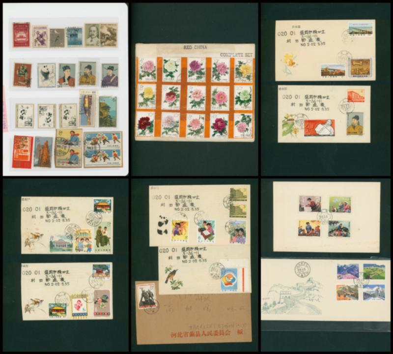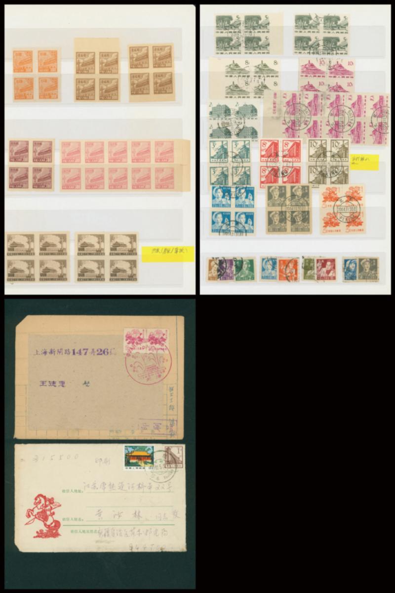 China 1950-1962 Lots with regular stamps arranged on a stock leaf. 2leaves, 97 stamps, 2 covers It contains many blocks and also includes two usage examples. good condition, mixed condition of unused and used, (Image1)