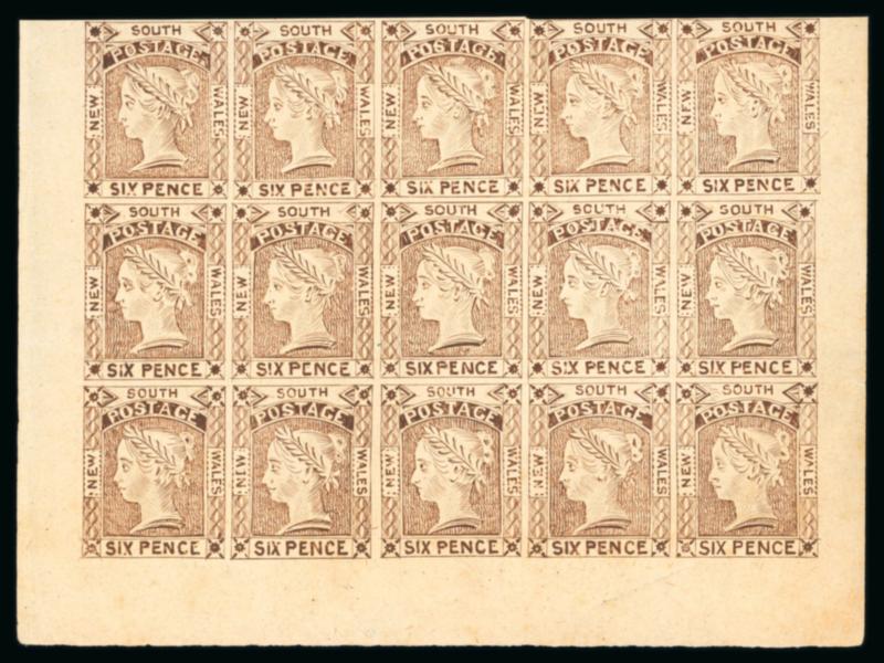 1853 6d brown, plate I, reprint bottom sheet marginal block of fifteen, unusual, very fine and scarce (Image)