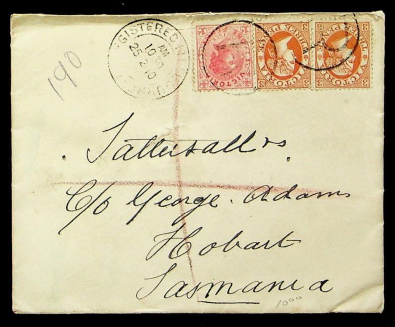 Victoria Australia 1910 QV 3v on Registered cover from Melbourne to Hobart Tasmania (Image)