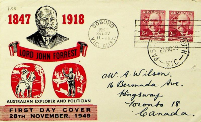 Australia 1949 pair Explorer Politician Lord John Forrest FDC to Canada (Image)