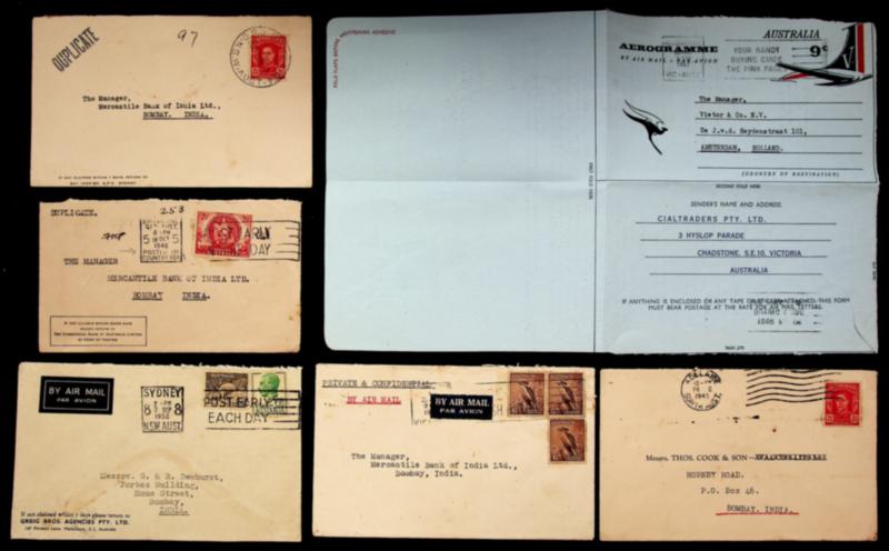 Australia group of 5 covers to India + 1967 Aerogramme to Amsterdam Netherlands (Image)