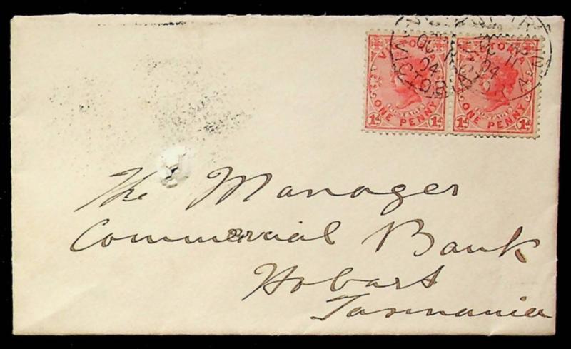 Victoria Australia 1904 QV 1d pair on cover to Hobart Tasmania (Image)