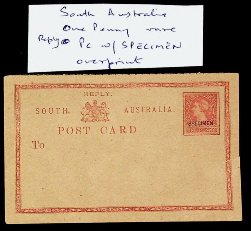 South Australia 1p rare reply card with 'SPECIMEN' ovpt unused (Image)