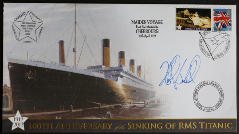 Autographs Centenary of R.M.S TITANIC three different Official Buckingham covers all signed by Dr. Robert Ballard incl. 1911 Anniv. of the ship's Launch coin cover and 2012 Anniv. of the ship's sinking carried aboard M.S. Balmoral Memorial Voyage, one carried from Southampton to Liverpool via Belfast (No. 283 of 450) and the other postmarked on the centenary of the Maiden Voyage (15th April) on board MS Balmoral above the wreck. Superb condition. (Ref: 00217/2) (Image)