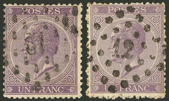Sc.22 + 22b, 1866/7 1Fr. Leopold I perforation 15 and 14½x14, VF (Image)