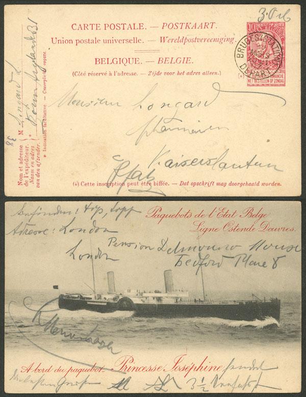 Postal card with impression on back of paquebot "Princesse Joséphine", used in 1907, excellent quality! (Image)
