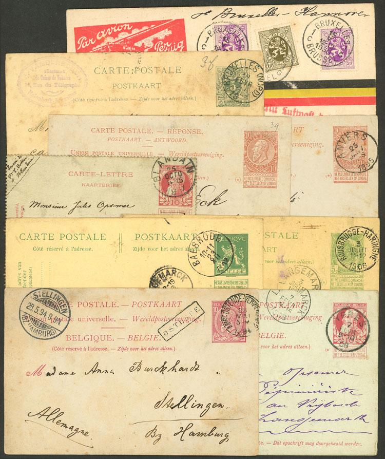 8 Old postal stationeries, used, interesting cancels + Bruxelles - Hannover flight of 1930, in general of fine to VF quality! IMPORTANT: Please view ALL the photos of the lot, because all the material has been scanned (both sides) (Image)