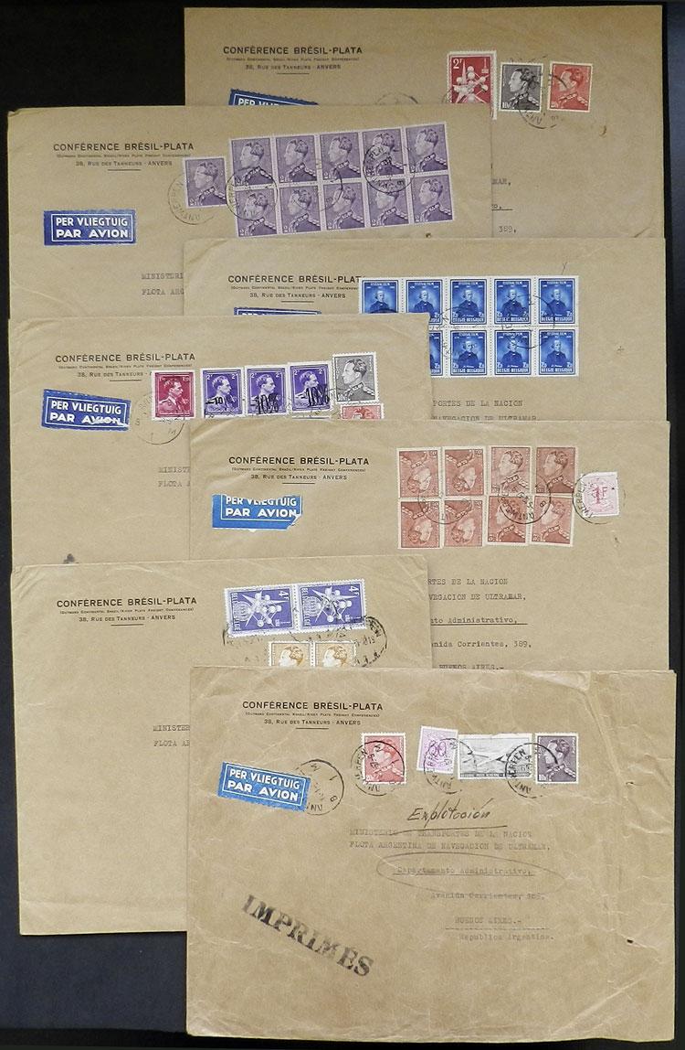 PERFIN + LARGE POSTAGE: Registered airmail cover sent from Anvers to Argentina on 26/OC/1960 (containing commercial papers), large franking of 175.90Fr. (one stamp of the original postage is missing), all the stamps with "E C" PERFIN, very attractive! (Image)