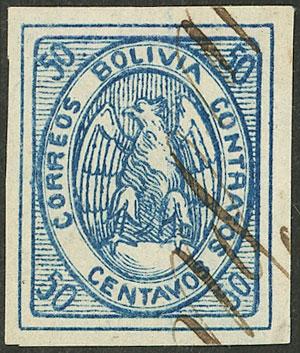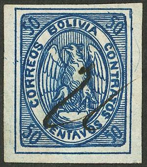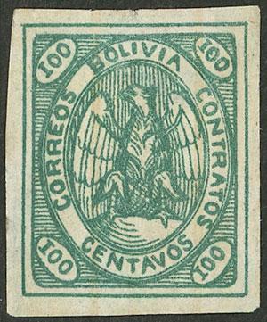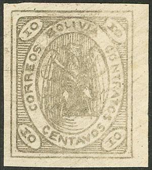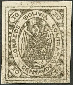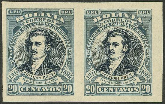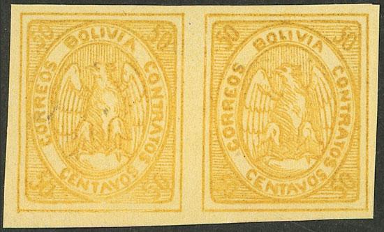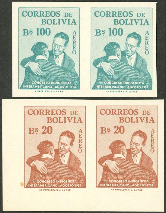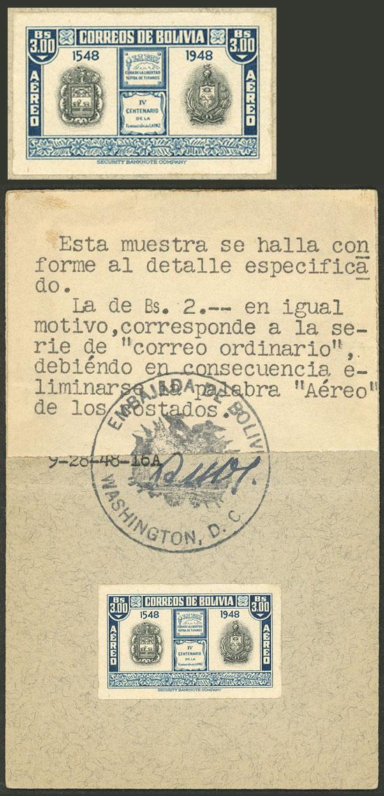 Yvert 126, 1951 10 Bs. Coat of arms of Castile & Captain Mendoza (founder of La Paz), PROOF mounted on card, presented by the printer to the postal authorities for approval before printing, rare, very fine quality! (Image)