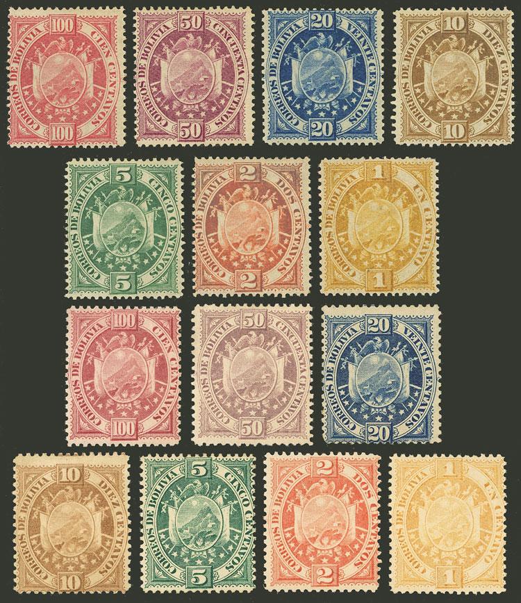 Yvert 39/45, 1894 Coat of arms, complete set of 7 values, mint with original gum, thin paper (London printing) + another one on thick paper (Paris printing), VF quality! (Image)