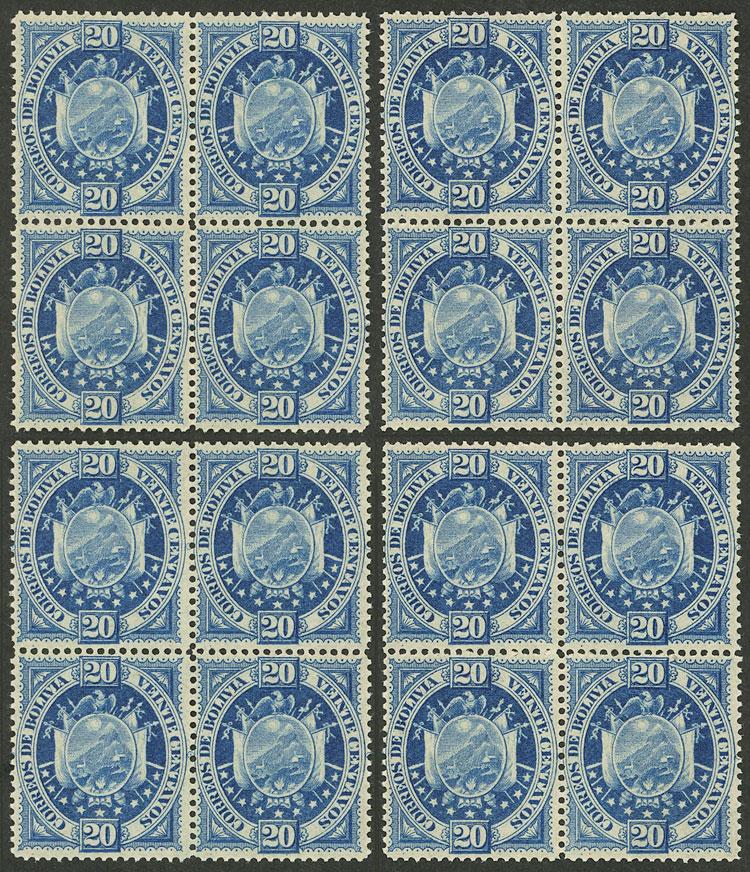 Yvert 43 (Sc.44), 1894 Coat of arms 20c., 4 blocks of 4, MNH (+50%), excellent quality! (Image)