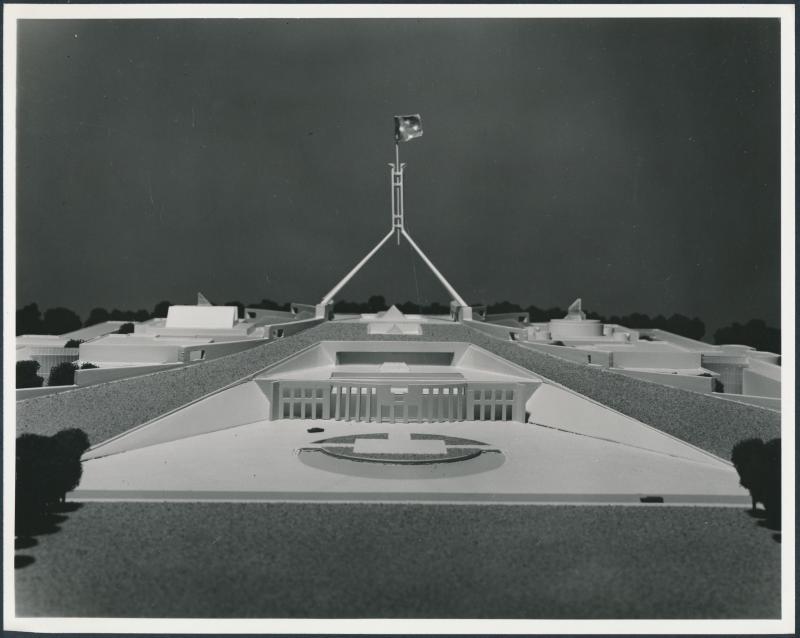 CANBERRA PARLIAMENT HOUSE: Blue Document Folder 'Parliament House Canberra' which includes a number of reports including 'The New and Permanent Parliament House Canberra - First Report of the Joint Standing Committee' [1977]; 'Parliament House Canberra - Conditions for a Two-stage Competition' in 2 Volumes [1979]; 'Two Stage Design Competition For Parliament House Canberra - Assessors Final Report' [1980]; plus maps (4), plans (6), slides (23), photos (2) & letters (3), published by Parliament House Construction Authority, mainly Fine. Ex Gordon Scholes MP. (Image1)