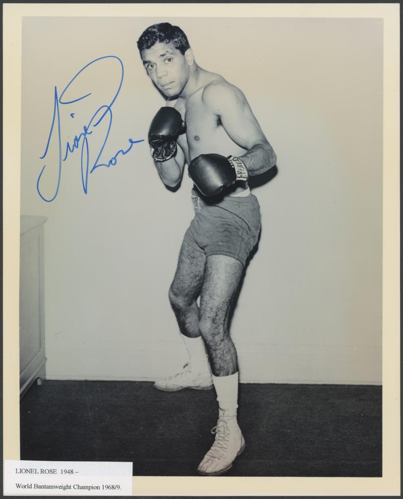 Autographs Flyweight to Middleweight collection in bulging album, with signed photos/pictures (93), pieces (55), boxing cards (23), cover, banknote & autograph pages (3) with 11 signatures; diverse range of signatures including Al Hostak, Gene Fullmer, Jake La Motta, Terry Downes, Joey Giardello, Nino Benvenuti, Alan Minter, Marvin Hagler, Bernard Hopkins, Felix Strum, Jimmy McClarnin, Kid Gavilan, Carmen Basilio, Emile Griffith, Sugar Ray Leonard, Floyd Mayweather, Kostya Tszyu, Willie Ritchie, Beau Jack, Roberto Duran, Ray "Boom Boom" Mancini, Johnny Famechon, Oscar de la Hoya & Lionel Rose, mainly Fine condition.