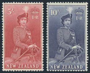 NEW ZEALAND DEALER'S STOCK 1953-2006: 280/2069, Two small 3-Ring binders with a stock of singles, sets, panes, blocks, booklets & SS's identified & priced on pages. Incl used 288-301 ($40); mint 300-1 ($112), 350-2 ($39), 403-4 ($42), 404A-D ($30), etc. Also some Ross Dependency incl both mint & used L5-8 ($102). Has useful duplication from 1-4 of each. F-VF, some NH, 2023 Scott $2,279 (1,059 stamps, 32 SS's) (Image)