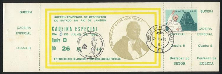Interesting FDI made over a ticket for the visit of POPE JOHN PAUL II to Rio, VF quality! (Image)