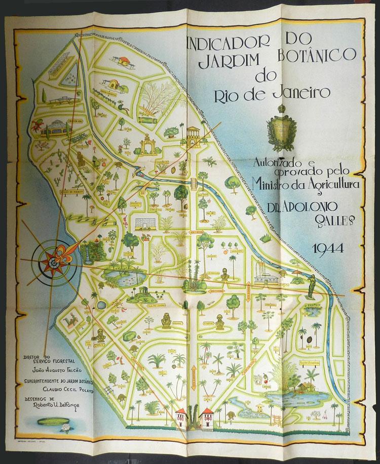 Map of the BOTANICAL GARDEN of Rio de Janeiro, published in 1944 by Imprenta Nacional, large size, very decorative! (Image)