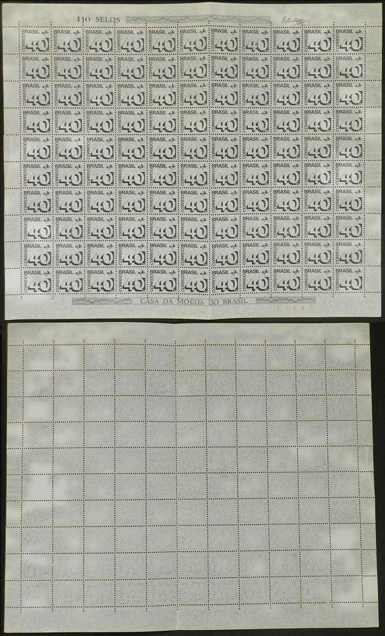 RHM.544, 1973 Figure 40c., complete sheet of 110 stamps with very oily impression (it appears to be marbled), very interesting! (Image)