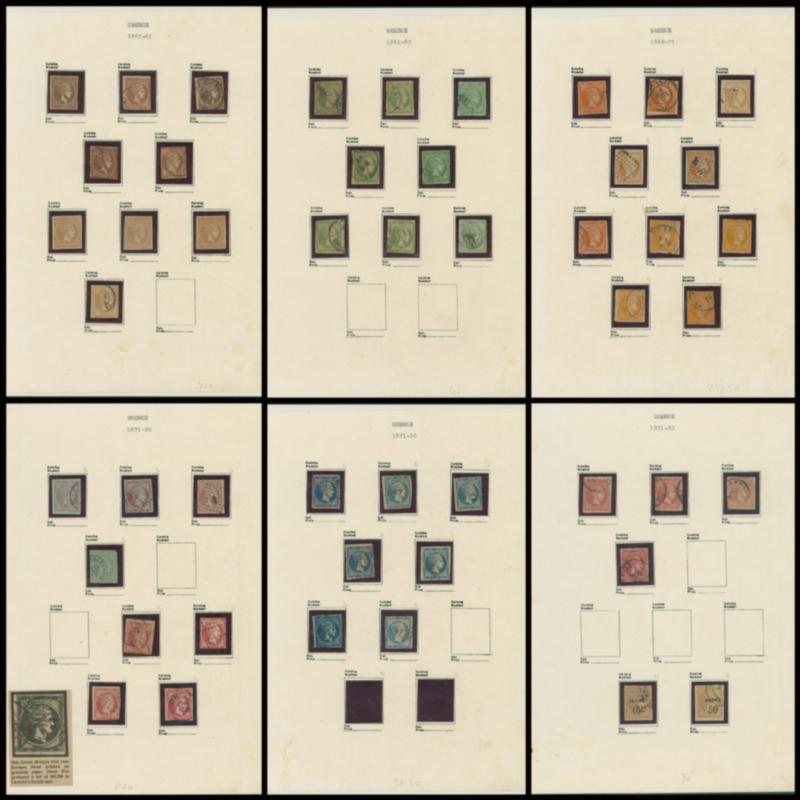 Greece 1862-1900 6 leaves, 48 stamps 1L, 2L, 5L, 10L, 40L, 80L, 40L on 2L, and etc stained, peeled, cut into face, mixed condition of unused and used, (Image1)