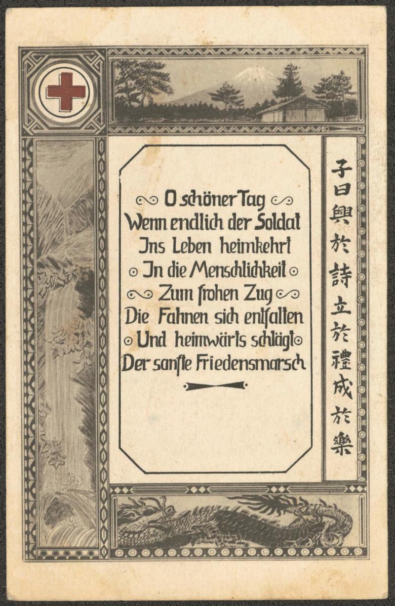 BANDO, Bildpostkarte von Aonogahara Motiv "GEDICHT O SCHÖNER TAG", mit Lagerstempel Typ II, Postleitstempel Doitsu-yuki und Auslandspoststempel "KOBE", vom "27.9.19" nach Schleiz. Ex Nachlass Erich Maye. (Image)