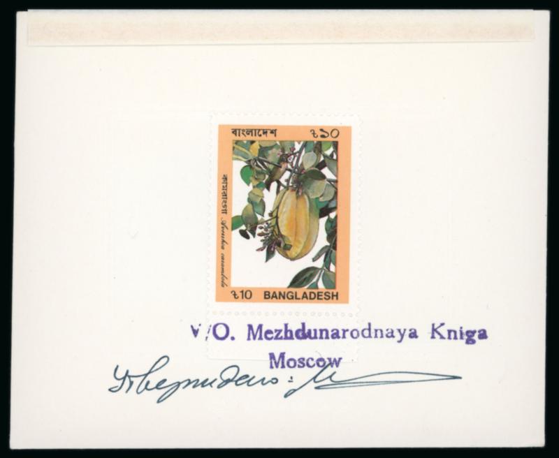 Bangladesh 1989 Tropical Fruit issued and unissued sets of seven, each on sunken frame embossed cards with manuscript and two-line handstamp of the Moscow printer, a fine and rare grouping (Image)
