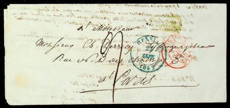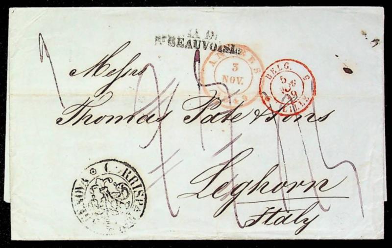 Belgium 1849 stampless cover with charge markings from Anvers to Livorno Italy w/ contents (Image)