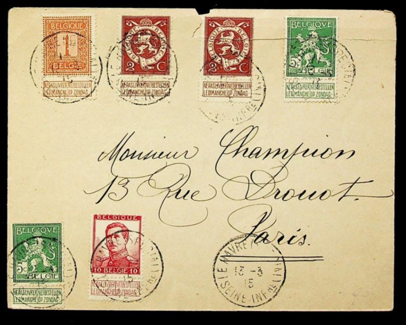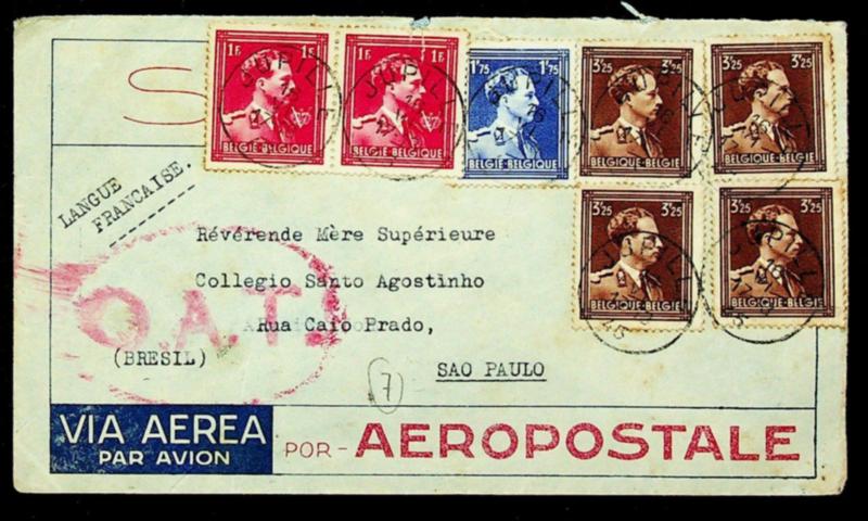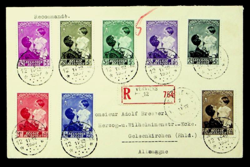 Belgium 1937 Child Welfare issue 8v on Regd cover from Verviers to Gelsenkirchen Germany (Image)
