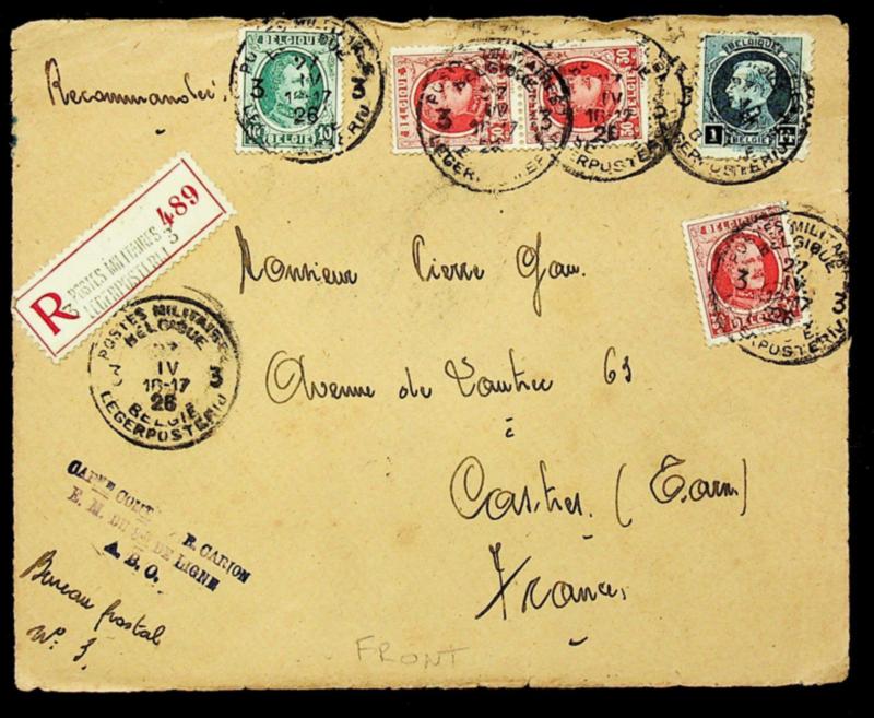 Belgium 1926 King Albert I 5v on Military Regd cover front to Castres France (Image)