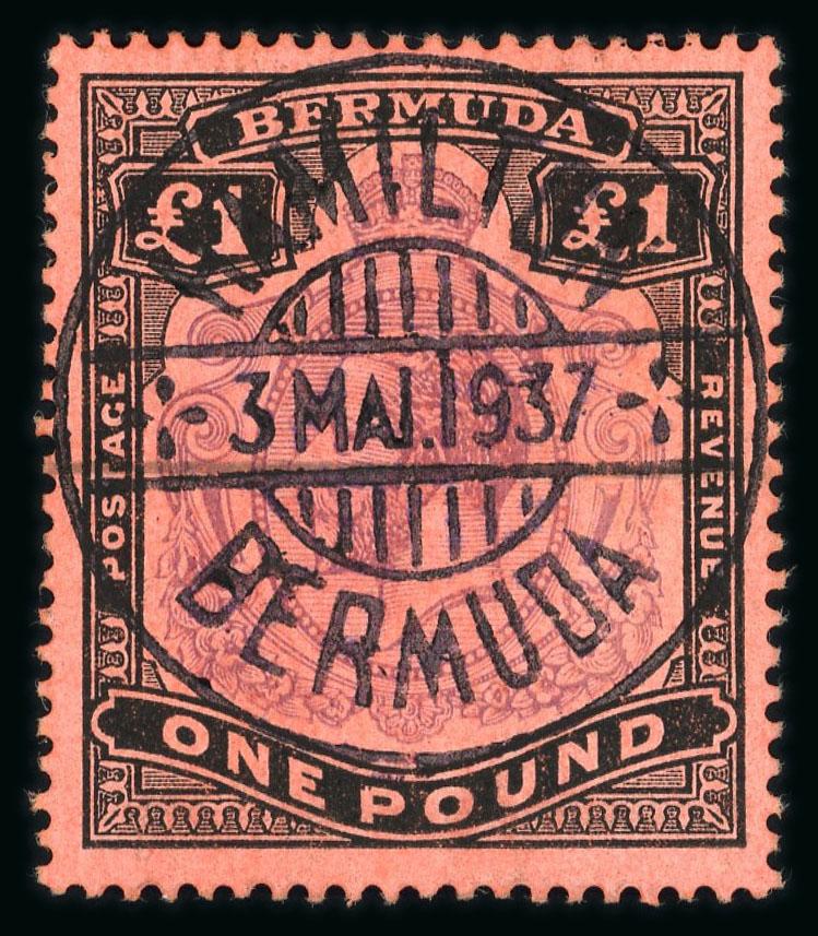 1918-22 Wmk Mult Crown CA £1 purple and black on red used with full strike of Hamilton cancel, a fine example (S.G. £550). (Image)