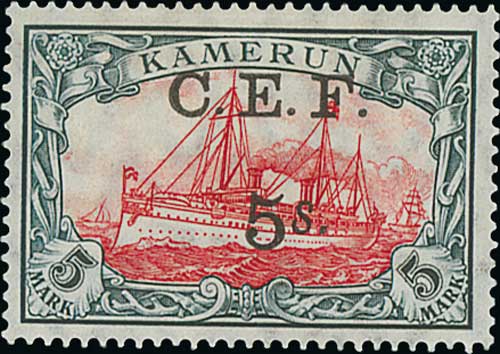 1915 1d - 5s C.E.F Surcharge set of thirteen (with additional 1d black overprint) used, 2d and 5s with a blunt upper corner, the four shilling values all with black expert handstamp on reverse, otherwise fine. S.G. £4,000. (14). Photo on Page 98. (Image1)