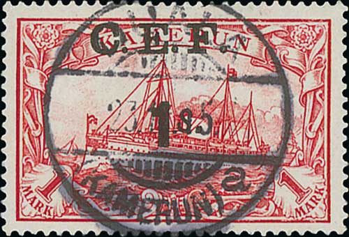 1897-1915 Cancellations, stamps and pieces mostly mounted on pages, many scarce cancels including Ambam, Buar (Eibenstein Certificate), violet straight line Buea registration handstamp, Ekodogo (Gabon), Jukaduma, Mundeck official seal in violet (2 pieces), Mora, Njassi, Ukoko, Nola, etc., stamps include 1m (5), 2m (3), 3m on piece used at Campo, also three 1908-10 Germany stamps apparently used in Cameroons. A fine and scarce collection. (c.400).