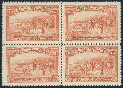 103, Lovely fresh block, beautiful centering, VF, NH, natural perf indentations on gum do not detract from this nice block (Image)