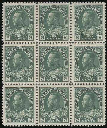 107a, Block of 9 of the thin paper, lovely centering, pristine fresh, VF, NH (Image)
