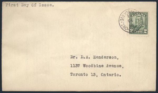 150, Tied by Toronto / Spadina Ave 17 Oct 1928 CDS on local FDC. F. Scarce (Image)