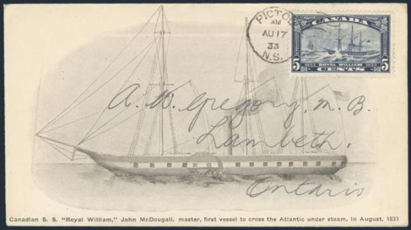 202-4, Tied by May-Aug 1933 CDS's on 3 diff FDC's. First 2 uncach to USA, latter full front cachet depicting a drawing of the "Royal William" (to Lambeth, Ont). F-VF (Image)