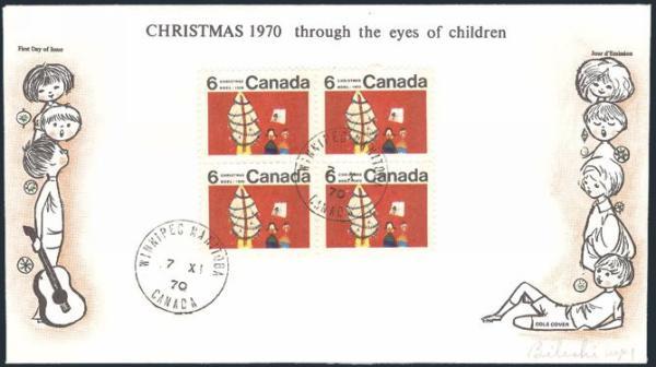522i, 522pi, 525i, 525pi, Set of 4 diff 1970 Christmas CENTRE BLOCKS (both regular & tagged) on cach FDC's. VF (4) (Image)