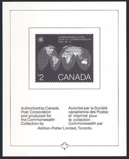 CANADA $2 BLACK PRINT: 977, $2 Commonwealth Day Presentation "BLACK PRINT" card from 1983. Only 20,000 printed by Ashton-Potter like this. VF (Image)