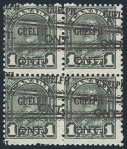 GUELPH 1-163b-D, Block with Double Precancel. F, NH (Image)