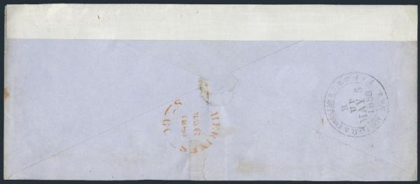 QC188 (RF-F) MONTREAL & KINGSTON G.T.R. WAY P.O./ No 2 strike on reverse side of stampless cover from Coteau-de-Lac, CE 4 July 1858 to St. Catharines, CW (No. 2 First Year of use - listed only as No. 3 in Cat). St. Catharines receiver in orange. F, archival tape on reverse. Rare (Image)