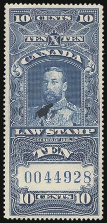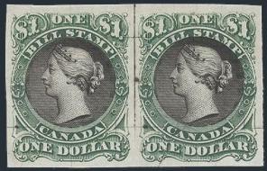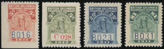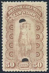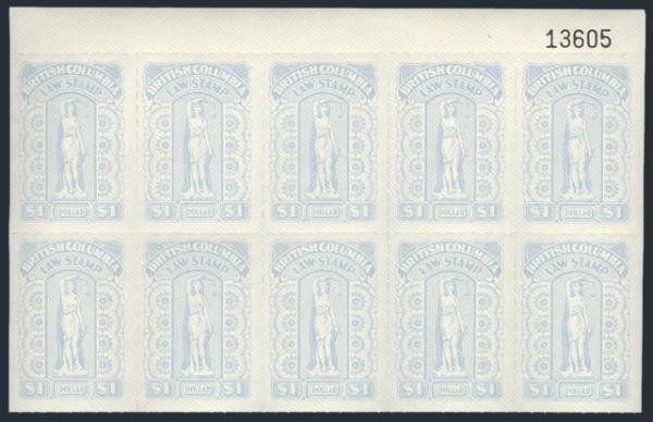BCL63, Lovely top margin block of 10 of the Br. Columbia $1 Rouletted with light red underprint. Has counter number in top margin. VF, NH. A PRETTY SHOWPIECE! (Image)