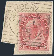 CUMBERLAND, ONT (RF 35), Nice strike 1 Au '98 tying 3¢ Numeral on piece. F (Image)