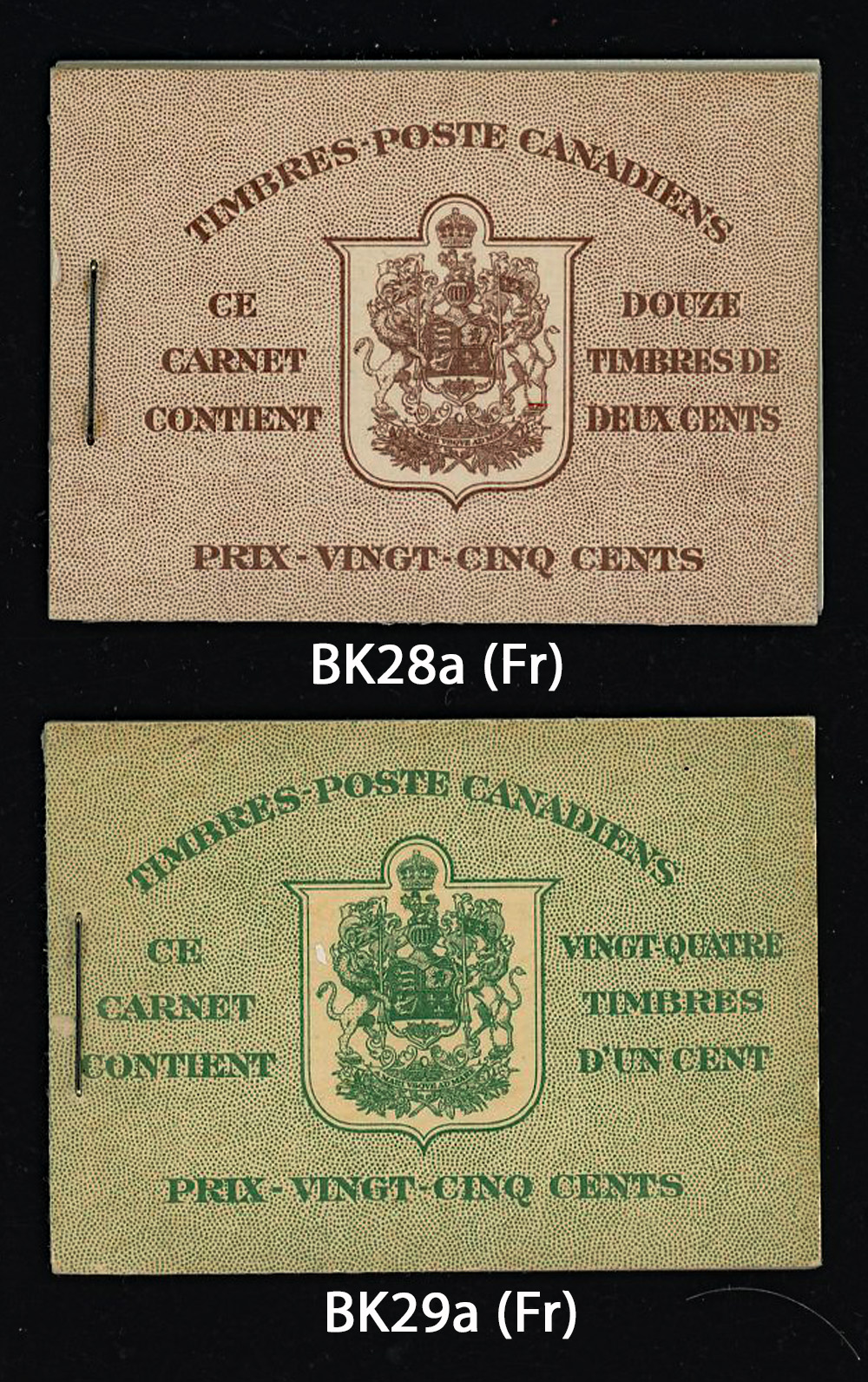 (#BK28a/BK44) CANADA KGV BOOKLETS 1937-1951, 23 booklet entires and 4 booklet panes mounted on Harris album pages, includes better BK28a(Fr), 29a(Fr), 32a, 32a(Fr), 33a, 34a(Fr), 34c(Fr), 34d(Fr), 35c(Bi), 36d, 37a, 37a(Fr), 38a, 38a(Fr), 39a, 39a(Fr), 40b(Bi), 41a, 41c, and 44(Bi), a nice group with Unitrade cat over $650 US ($920 CDN), VF est ($150+ US) (Image)