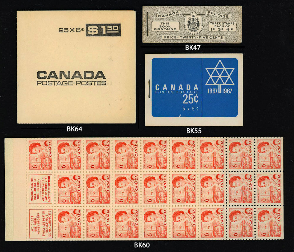 (#BK49a/BK215) CANADA BOOKLET ENTIRES 1962-1990's, includes 25¢ to $13.80 booklets, face value $670 CDN, VF est ($150+ US) (Image)