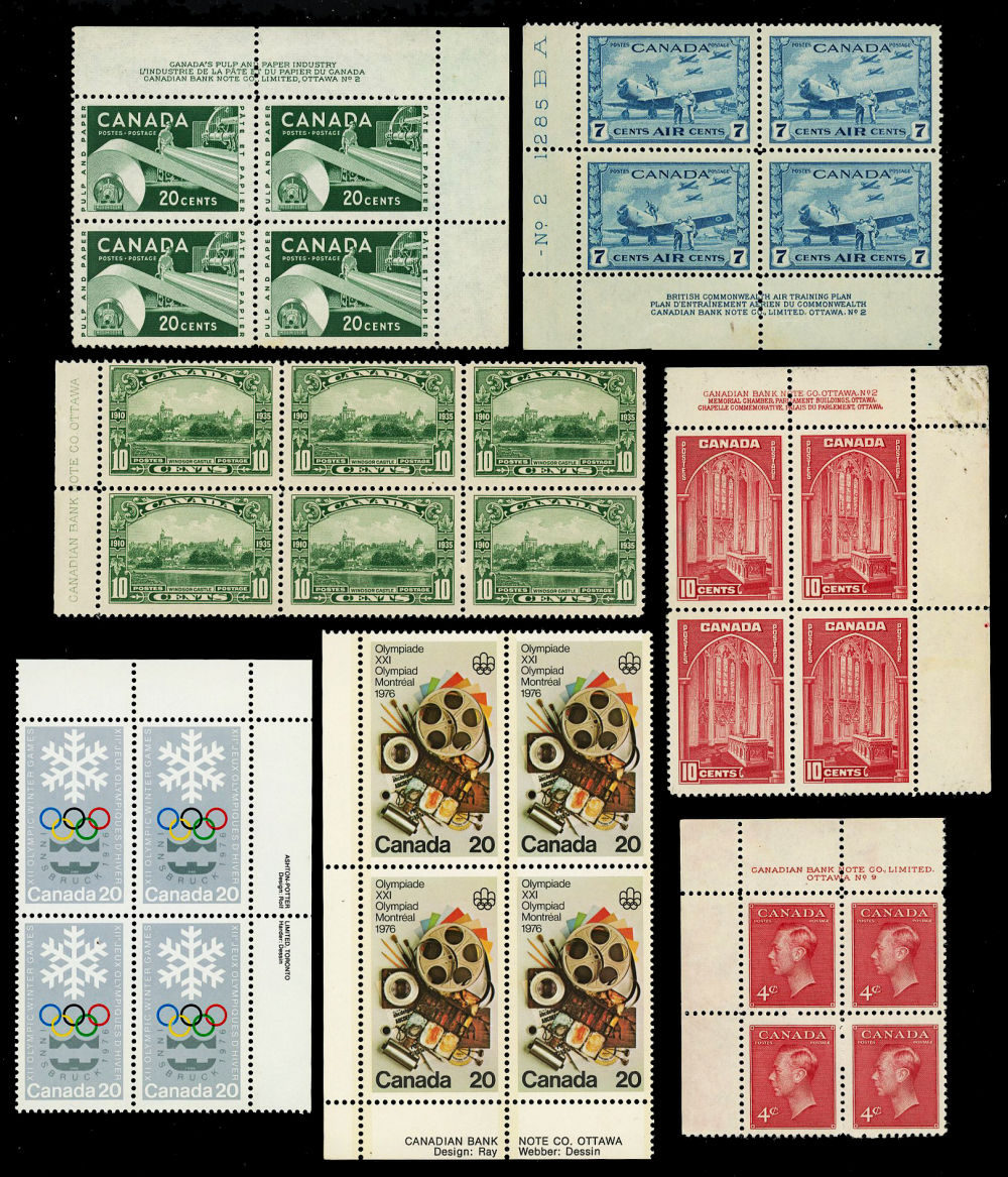 CANADA MNH PLATE BLOCKS 1976-1990's, 270 in the 25¢-$1.00 denominations, Scott cat over $600 US ($850 CDN), VF face value $330 CDN est ($150+ US)