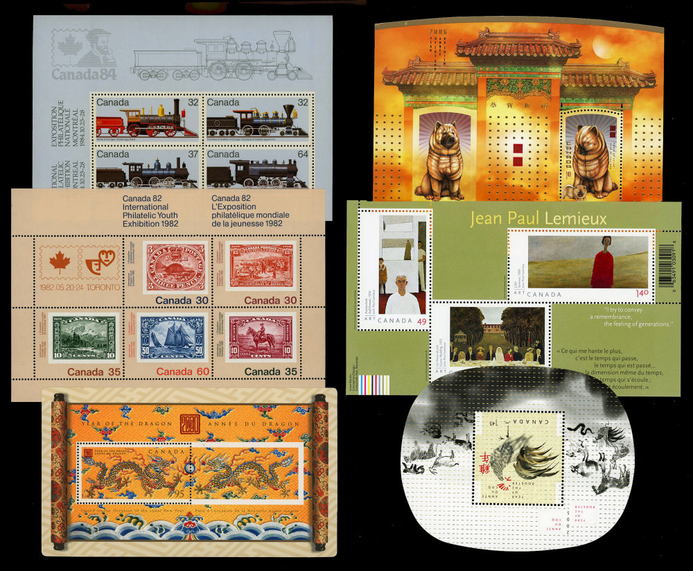 (#913a/2141) CANADA MNH SOUVENIR SHEETS 1982-2006, 97 souvenir sheets with stamp denominations 30¢-$1.49, a few duplicates, Scott cat over $450 US ($650 CDN), face value $212 CDN, VF est ($75+ US) (Image)